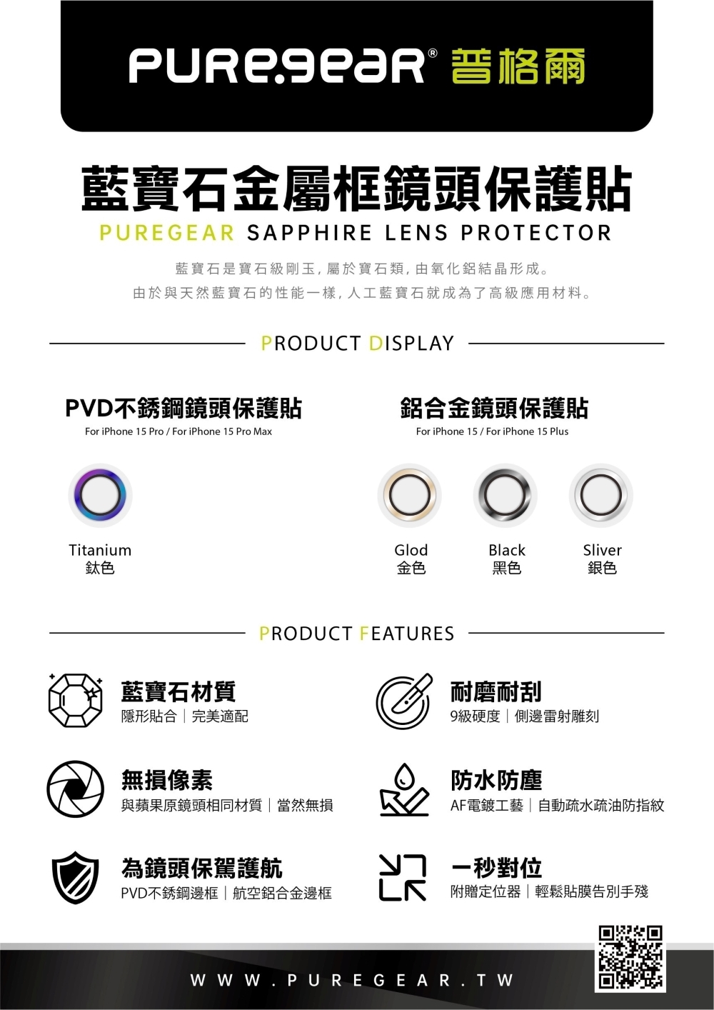 iPhone 15 / 15 Plus 藍寶石金屬框鏡頭保護貼