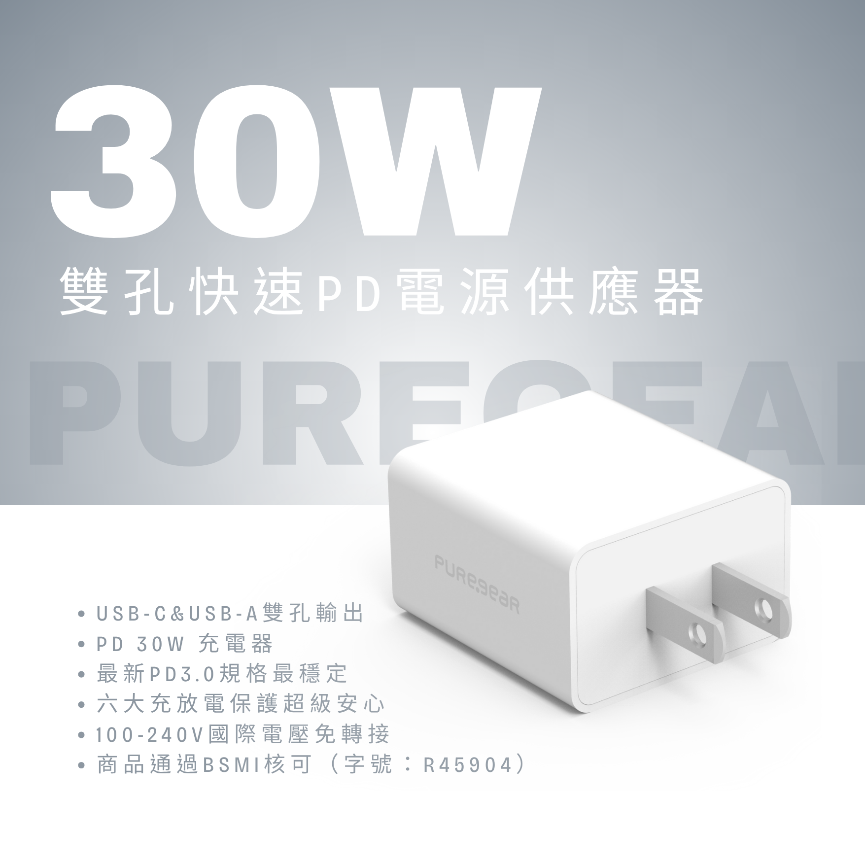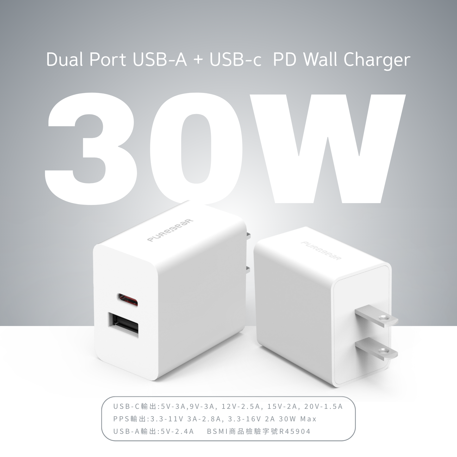 30W 雙孔快速PD電源供應器