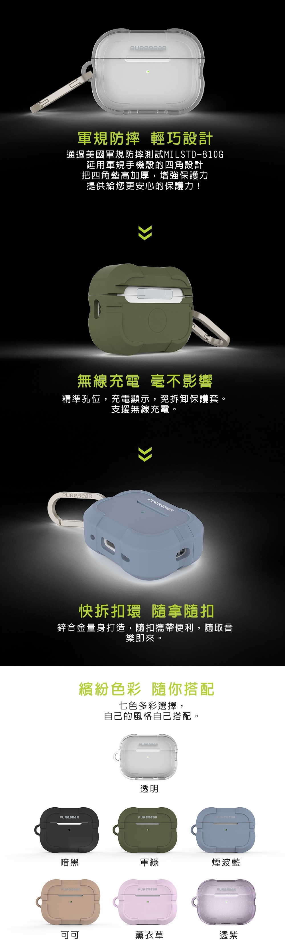 顏色:暗黑、軍綠、煙波藍、可可、透明、透紫、薰衣草