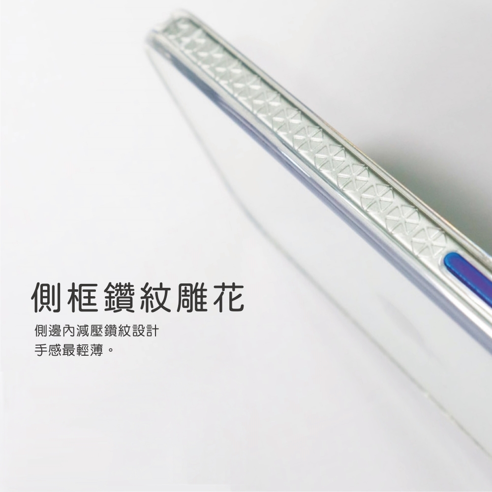 • 側邊減壓鑽紋設計。手感最輕薄。
