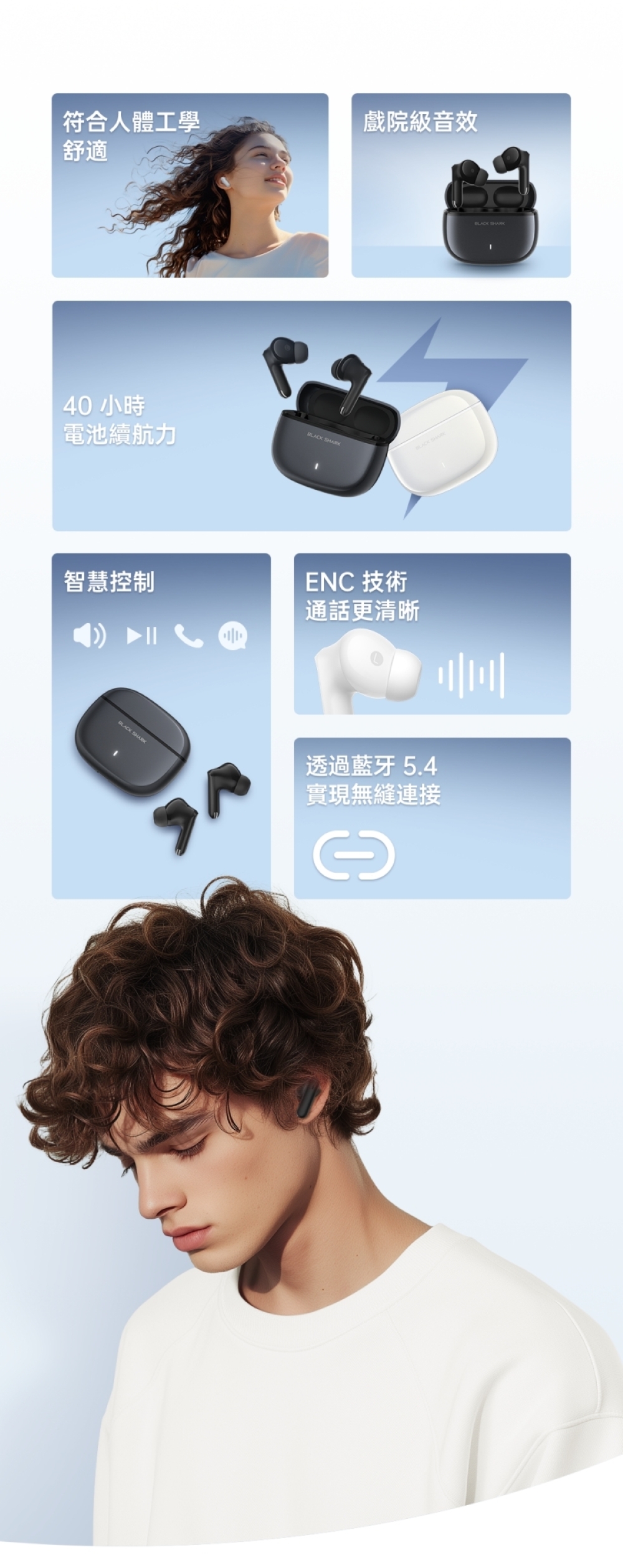 為日常聆聽與遊戲體驗而生,Black Shark T23 結合人體工學設計、高品質音效與智慧降噪技術,無論通勤、運動或長時間配戴,都能享受清晰、穩定又舒適的聆聽體驗。