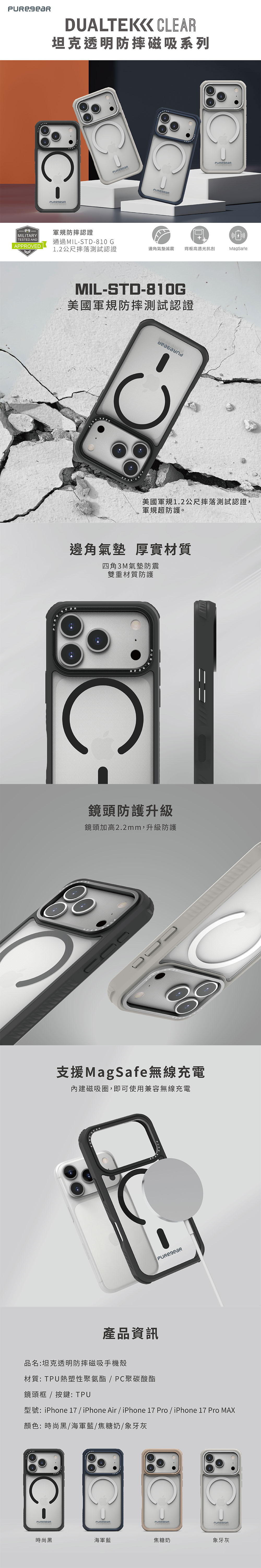 • 雙重材質完美防護:★外層:硬性PC高密度抗刮背板 + ★邊框:高彈性防摔TPU邊框。